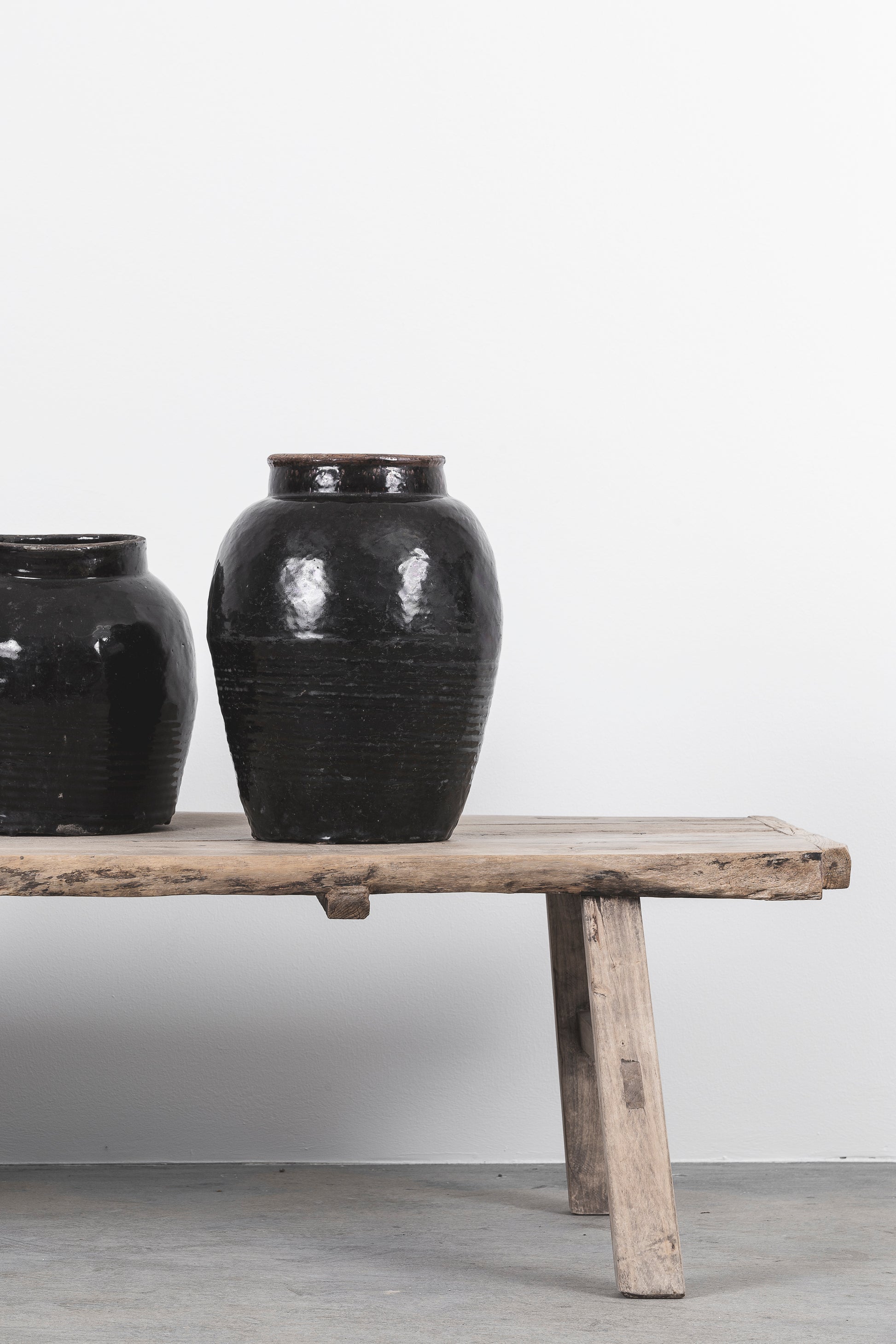 Rustic and decorative with a striking black glaze, this floor vase makes a bold statement. Not guaranteed to hold water—best suited for dried or artificial arrangements.