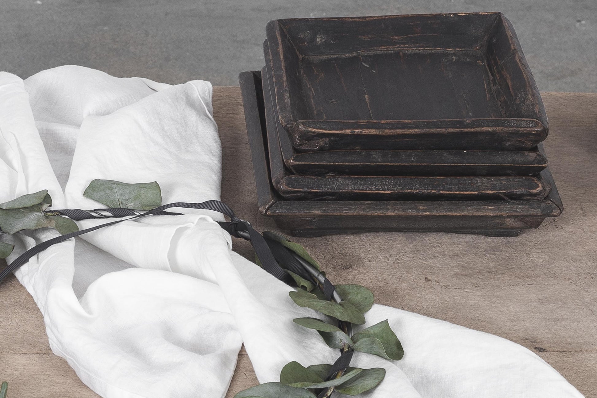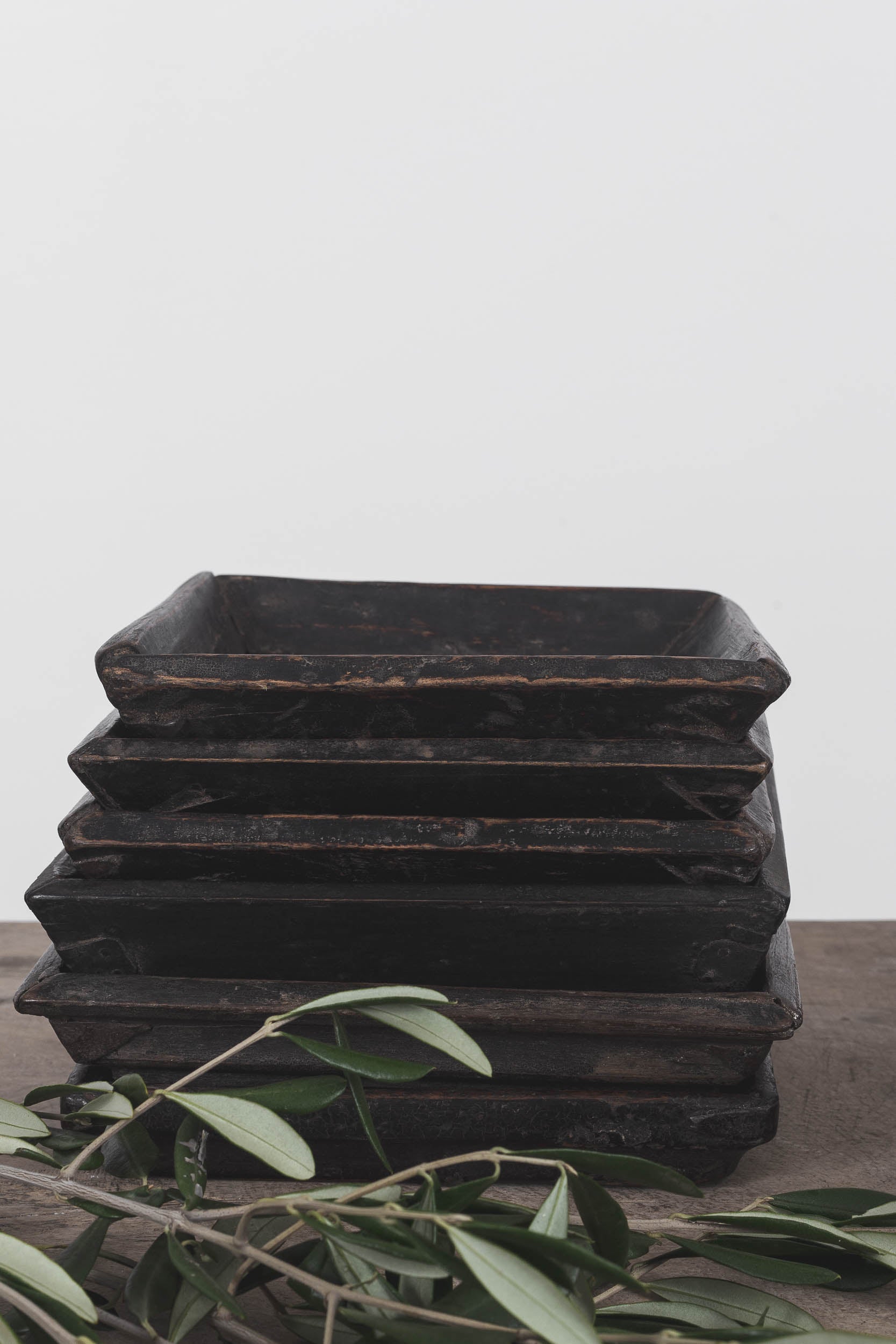 This small rustic tray adds a touch of original vintage charm to any corner of your home. With a worn black finish and one-of-a-kind detailing, no two are exactly the same. Perfect for holding jewellery on your bedside table, soaps in the bathroom, keys by the door, or candles for a cozy touch.